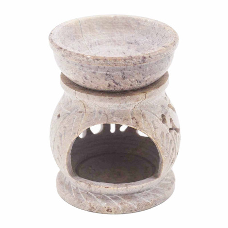 Materiał z którego wykonany jest kominek to wysokiej jakości steatyt - minerał o jedwabistej teksturze i niepowtarzalnych wzorach. Steatyt doskonale utrzymuje ciepło, co sprawia, że aromatyczne olejki eteryczne szybko się rozprzestrzeniają, wypełniając pomieszczenie przyjemnym zapachem.
