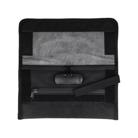 Zamykana na mocny rzep. Podzielona na 2 kieszenie zamykane na wodoodporny, kryty zamek oraz kłódkę z szyfrem.
