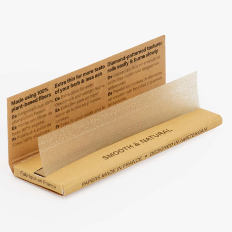 Papiery są wytwarzane przy użyciu najbardziej naturalnych materiałów i procesów we Francji, w której bletki te są tworzenie i udoskonalane od 1872 roku. Marka idzie również w stronę alternatywnych surowców takich jak: bambus, konopie i lucerna. Fakt: Nasze papiery Medicago Sativa są produkowane w regionie Alcoy w Hiszpanii; skąd właściwie pochodzą bibułki… sięgające początku XVII wieku.