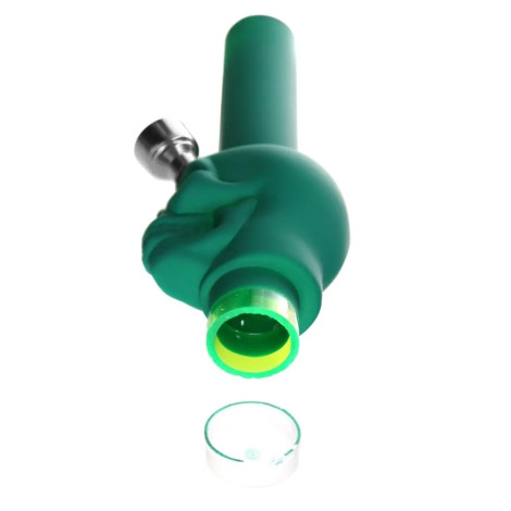Wyposażone metalowy cybuch w zestawie z sitkiem, osadzony na stabilnej podstawie. To, co wyróżnia je na tle innych akrylowych bong, to sprzęgło, które pozwala regulować intesywność chmury.