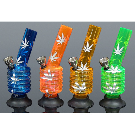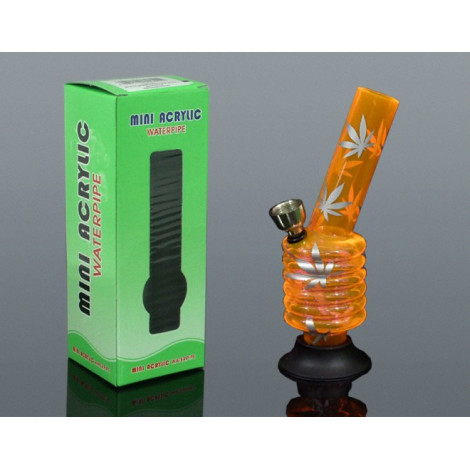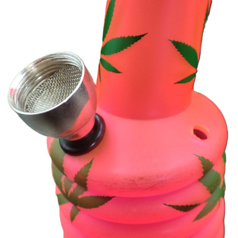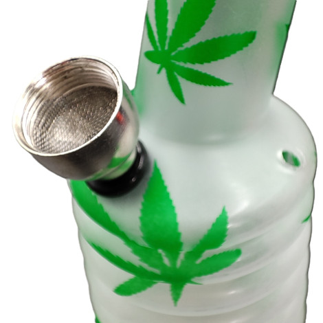 Wygodne i praktyczne małe bongo akrylowe w listki ganji. Idealne na wypad w plener, nie trzeba się obawiać, że ktoś je stłucze ;) Wysokość 16cm, mix. kolorów.