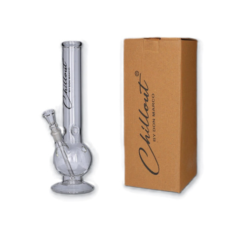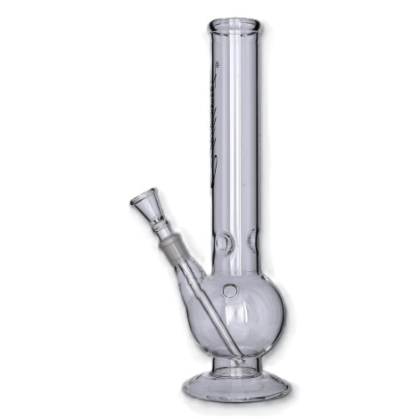 Bongo o wysokości ok. 30cm. Elegancka, klasyczna, bezbarwna forma z bańką. Posiada stopkę z bardzo grubej warstwy szkła, która świetnie chroni przed przewróceniem. Wysoka jakość w jeszcze lepszej cenie!