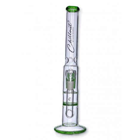 Bongo posiada stopkę z bardzo grubej warstwy szkła, która świetnie chroni przed przewróceniem. Posiada zielone wstawki, co wyróżnia go na tle przeźroczystych bong. W zestawie z cybuchem o szlifie 18,5mm.