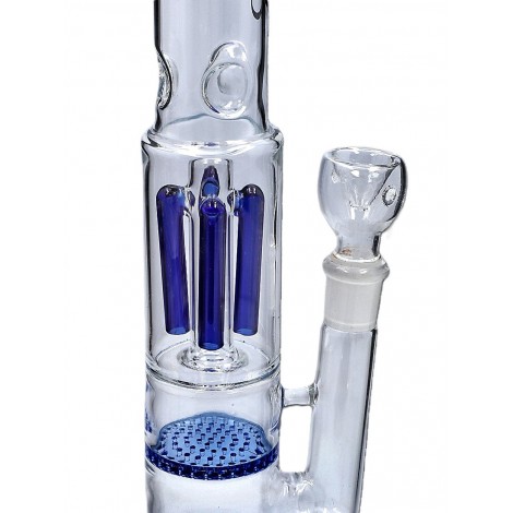 Wykonane jest z grubego, solidnego szkła. Wyposażone w aż dwa różne dyfuzory, jeden dyfuzor czteroramienny oraz drugi tzw. plaster miodu. Podwójna filtracja sprawia, że dym jest delikatny, nie gryzie, więc łatwo go przyjąć! Dodatkowo posiada wypustki umożliwiające lodową filtrację chłodzącą i odświeżającą dym.