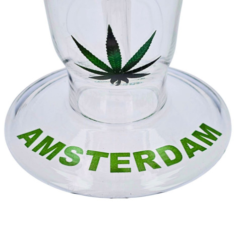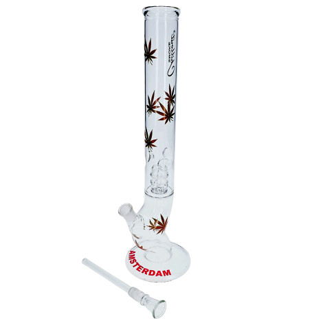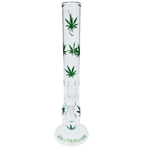 Bongo o wysokości ok. 45cm, o wyjątkowym kształcie - lekko wygięte przy podstawie. Naznaczone licznymi listkami ganji. Dostępne w różnych wariantach kolorystycznych - wysyłane losowo, lub na życzenie klienta (w zależności od dostępności).