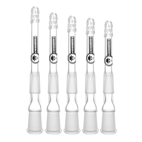 Przejściówka do Cybucha w Bongu Heisenberg z perforacją filtrującą u nasady adaptera. Wykonana z grubego szkła, odpornego na stłuczenia i wysoką temperaturę.
