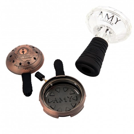 Ekskluzywny zestaw do shishy od AMY DELUXE - Szklany cybuch do shishy typu funnel oraz wysokiej jakości kominek typu kaloud lotus