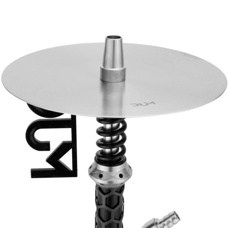 Shisha DUM Hydraulique w eleganckiej czarno-srebrnej kolorystyce - Zapiera dech w piersiach. Wyjątkowa kolorystyka, robi niesamowite wrażenie!!! Model dodatkowo przyciąga wzrok za sprawką wyjątkowemu korpusowi. Korpus posiada odpowietrznik po środku, dzięki czemu dym wylatuje dookoła shishy, tworząc kolejny ciekawy efekt wizualny.