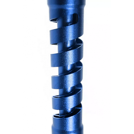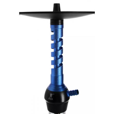 Rurka korpusu wykonana z anodowanego aluminium jest pięknie ozdobiona spiralą. Podstawa jest nie tylko zbudowana jako część systemu z zamkniętą komorą, ale ma też sprytną funkcję wyrzutu z zainstalowanymi 4 kulami zaworowymi. Kiedy wydmuchujesz dym, przechodzi on przez kulki zaworu i jest wyrzucany przez otwory w trzonie wzdłuż trzonu fajki wodnej, dzięki czemu uzyskujemy efektowny system odpowietrzania, widoczny w galerii zdjęć produktu.