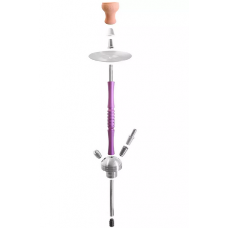 Kaya Shisha z serii INOX. Nazwa INOX pochodzi od rodzaju metalu, z którego został wykonany korpus shishy. INOX to najwyższej jakości stal nierdzewna, która jest nawet kwasoodporna. Kolumna jest wykonana z grubego kawałka stali INOX, również rurka zanurzeniowa oraz talerzyk na popiół. Dzban wykonany z grubego szkła, dzięki czemu shisha jest cała masywna a zadbana posłuży na długie lata. Jednakże charakteru shishy nadaje nowoczesny, intensywny fioletowy kolor. Kolumna korpusu została dodatkowo pokryta fioletowym aluminium co w połączeniu z kryształowym przezroczystym dzbanem nadaje wyjątkowego charakteru shishy. Nowoczesny a zarazem elegancki design shishy, która zaskoczy niejednego palacza :) Wysokość shishy około 72cm