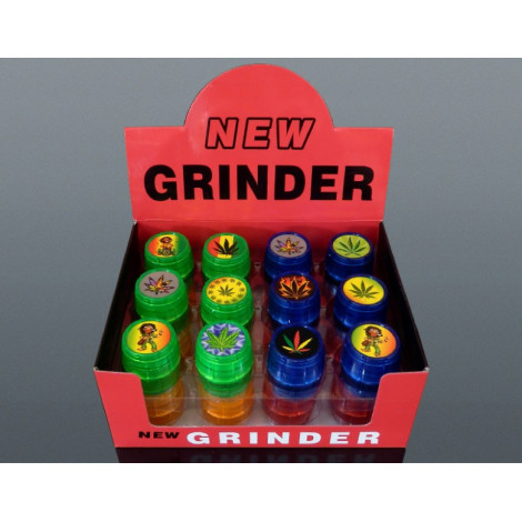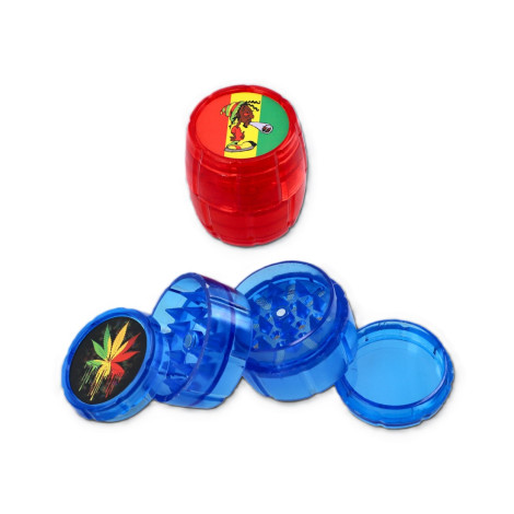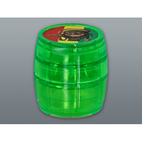 Wygodny 3-komorowy młynek w kształcie beczki, z kolorową naklejką na wierzchu!