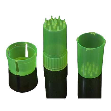 Duży młynek akrylowy, posiada wytrzymałe trójkątne ząbki. 3 częściowy, 3 komory w tym jedna z bardzo dużym pojemniczkiem na drobny susz oraz sitko :) Wymiary: 4x9 cm. Mix kolor,ów, kolor wysyłamy losowo.