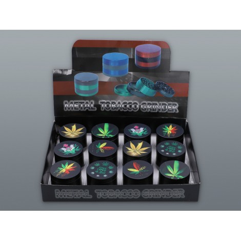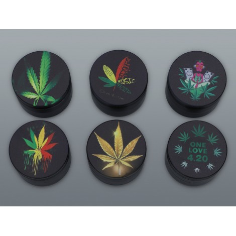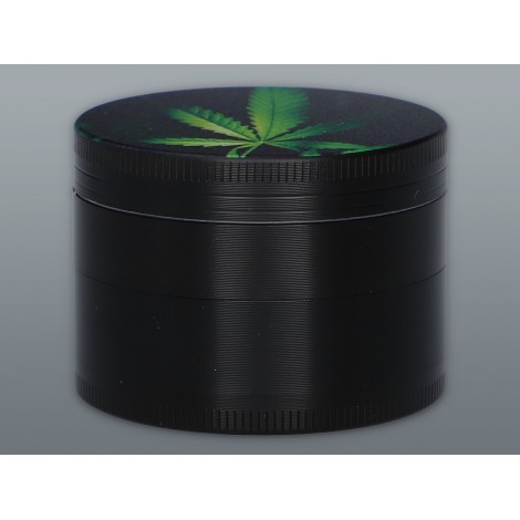 Dużej wielkości czarny młynek z liśćmi Marihuany.