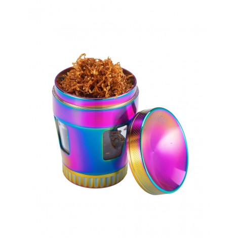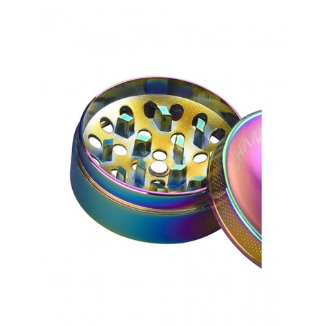 Młynek o pokaźnych rozmiarach 5x6,5cm - składa się łącznie z 4 części, posiada specjalną komorę na zmielony susz, osobne miejsce z sitkiem na pyłek który powstaje podczas mielenia suszu.