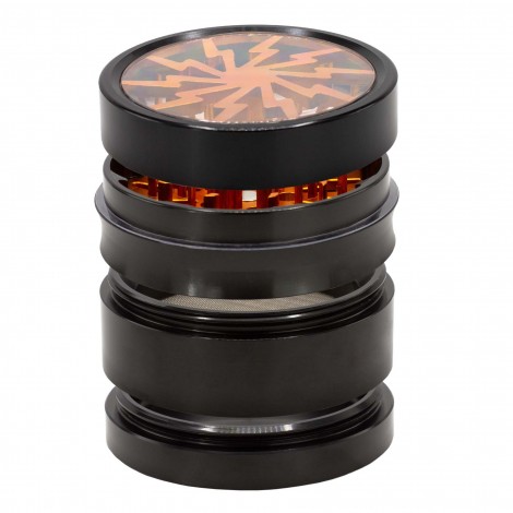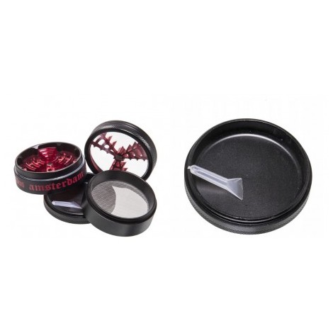 Wymiary młynka to 5cm szerokości, 4,3cm wysokości składa się łącznie z 4 części, posiada specjalną komorę na zmielony susz, osobną komorę z sitkiem na pyłek który powstaje podczas mielenia suszu.