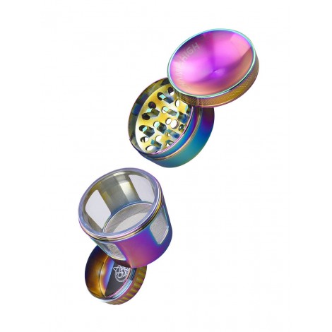 Młynek o pokaźnych rozmiarach 5x6,5cm - składa się łącznie z 4 części, posiada specjalną komorę na zmielony susz, osobne miejsce z sitkiem na pyłek który powstaje podczas mielenia suszu.