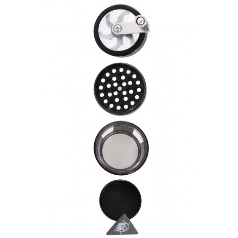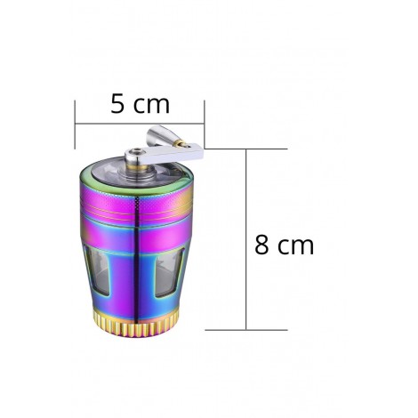 Młynek o pokaźnych rozmiarach 5x10cm - składa się łącznie z 4 części, posiada specjalną komorę na zmielony susz, osobne miejsce z sitkiem na pyłek który powstaje podczas mielenia suszu.
