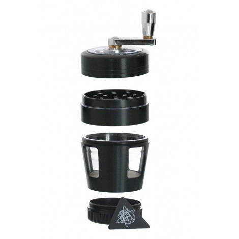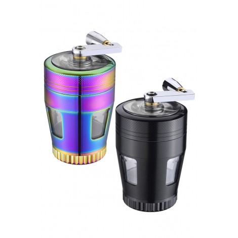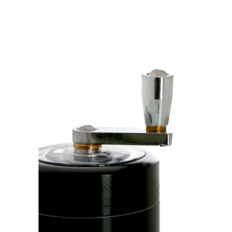 Młynek z bocznymi okienkami, aby mieć oko na stopień zmielenia ziół lub przypraw. Wraz z wygodną korbką do mielnia suszu.