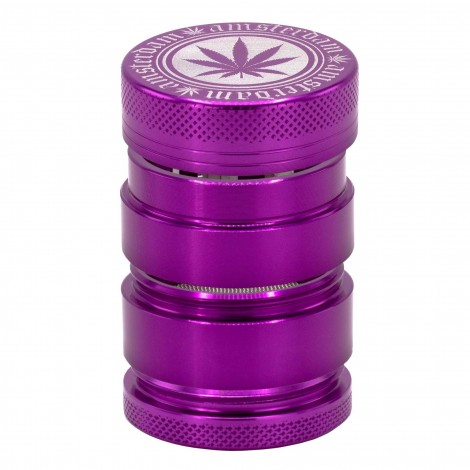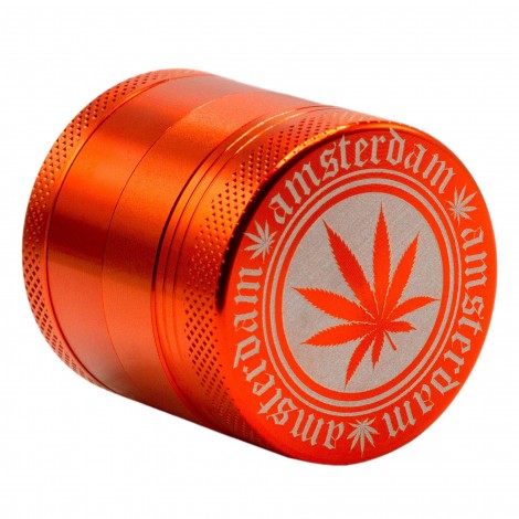 Ozdobny grawerunek na wieczku młynka przedstawia liści konopi otoczony w kółku z napisów "Amsterdam", co w połączeniu z ciemnym kolorem fantastycznie się prezentuje.