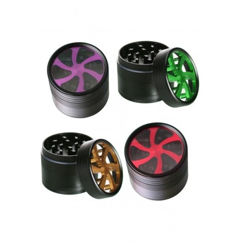 Młynek o pokaźnych rozmiarach 4x5cm - składa się łącznie z 4 części, posiada specjalną komorę na zmielony susz, osobną komorę z sitkiem na pyłek który powstaje podczas mielenia suszu.