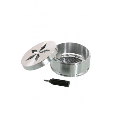 Komin AO HMD ma aż 5 wlotów powietrza. Równomiernie rozprowadza temperaturę po całym cybuchu w naszej shishy, którą możemy dowolnie kontrolować. Dzięki kominkowi, nie musisz używać, żadnej foli do shishy, a popiół nie rozsypuje się dookoła. Długa dźwignia na pokrywie zapobiega oparzeniu palców.