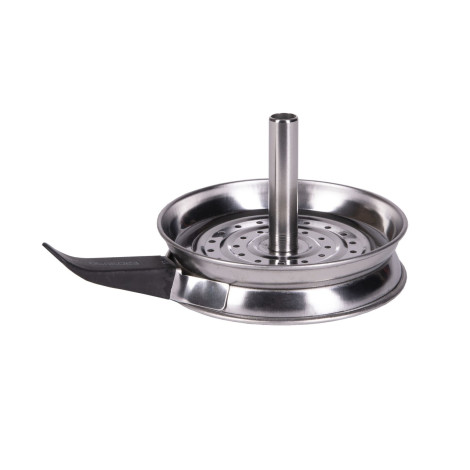 Metalowy kominek lepiej rozprowadza ciepło po cybuchu niż folia. Sito ma dużą powierzchnię, dzięki czemu możemy położyć więcej węgielków, dodatkowa krawędź sita zabezpiecza węgielki przed wypadnięciem z cybucha.