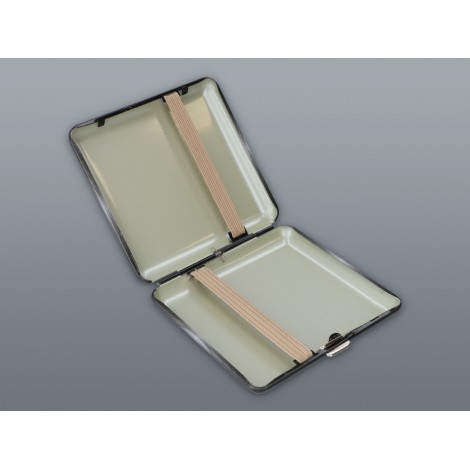 Metalowa papierośnica na 20 papierosów o długości 8,5 cm.