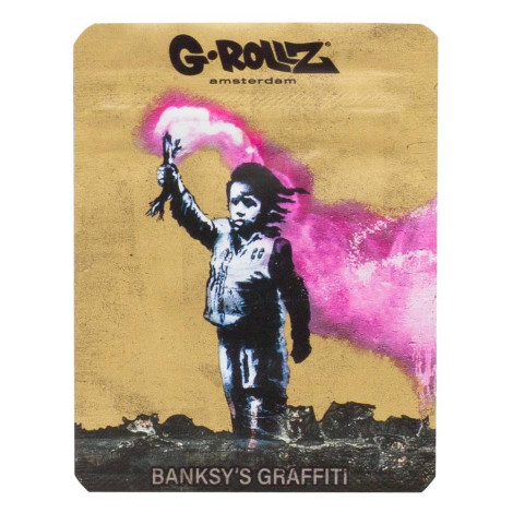 Świetnie zaprojektowana bezzapachowa torebka z licencjonowanymi grafikami Banksy'ego marki G-ROLLZ do przechowywania różnego rodzaju ziółek :)