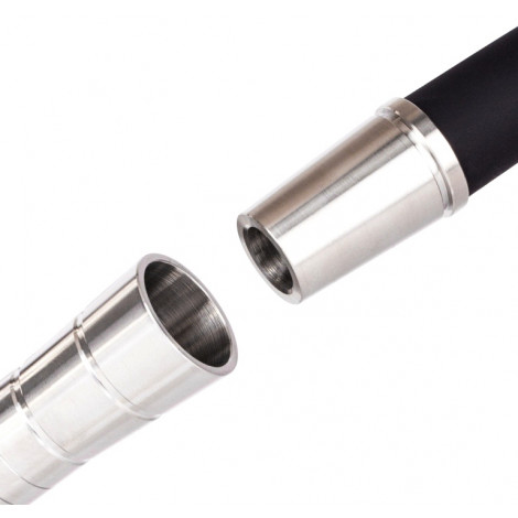 Aladin MVP jest bardzo wytrzymały i wykonany ze stali nierdzewnej V2A. Dzban w MVP Shisha wykonany jest z wytrzymałego szkła kryształowego, a rurka zanurzeniowa ma zintegrowany dyfuzor, który można dowolnie regulować. Dyfuzor pozwala na ciche bąbelkowanie fajki wodnej. W przypadku fajki wodnej Aladin MVP adapter głowicy, adaptery do rur i połączenia rurowe są ustawione na wysokiej jakości cięcie 18,8 mm, eliminując irytujące uszczelnienia rur, które często zawodzą. Ponadto ma to tę zaletę, że można również przymocować do kolumny dymu łapacz melasy o średnicy 18,8 mm, który utrzymuje sziszę w czystości z powodu spływającej melasy.