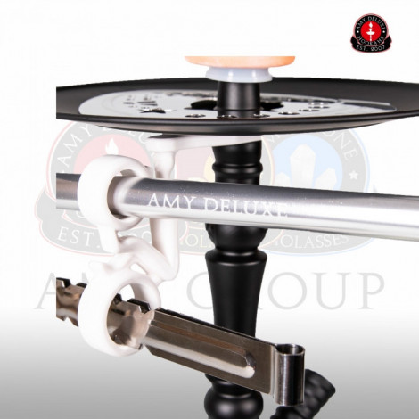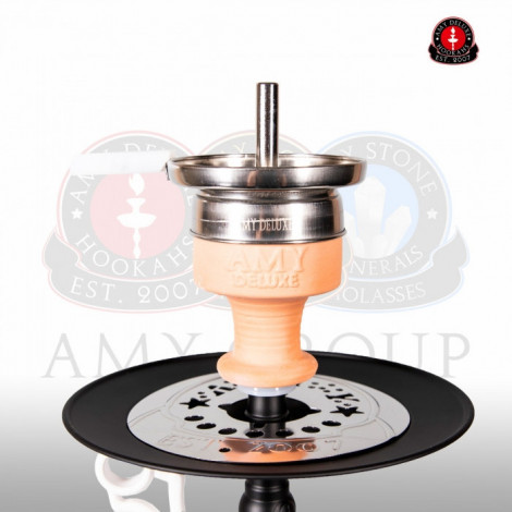 Pod podstawą znajdują się dwie komory, tzw. „Kanały przepływowe”. Przez te dwie komory przepływa dym, ponieważ znajdują się one bezpośrednio pod zaciskami. Dym musi zatem nieuchronnie przelecieć przez cały dzban w shishy i nie może się gromadzić podczas wydmuchiwania. W ten sposób system zatrzaskowy AMY Deluxe zapobiega nieprzyjemnemu drapaniu podczas palenia shishy!