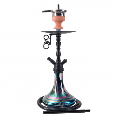 AMY Shisha Middle Zoom to młodsza siostra klasycznej fajki Zoom. Piękny połyskujacy dzban w stylu RAINBOW oraz czarny korpus, nadają charakteru shishy. Wykonana z najlepszych materiałów co jest standardem marki AMY. W shishy użyto najnowocześniejszy system łączenia dzbana z korpusem dzięki czemu shisha zachowuje absolutną szczelność. Cybuch kamienno-gliniany w kolorze czarnym posiada specjalny systemem otworów oraz kominek.