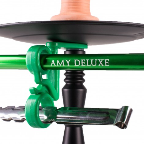 Pod podstawą znajdują się dwie komory, tzw. „Kanały przepływowe”. Przez te dwie komory przepływa dym, ponieważ znajdują się one bezpośrednio pod zaciskami. Dym musi zatem nieuchronnie przelecieć przez cały dzban w shishy i nie może się gromadzić podczas wydmuchiwania. W ten sposób system zatrzaskowy AMY Deluxe zapobiega nieprzyjemnemu drapaniu podczas palenia shishy!