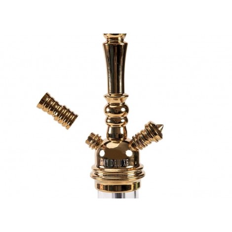 Pod podstawą znajdują się dwie komory, tzw. „Kanały przepływowe”. Przez te dwie komory przepływa dym, ponieważ znajdują się one bezpośrednio pod zaciskami. Dym musi zatem nieuchronnie przelecieć przez cały dzban w shishy i nie może się gromadzić podczas wydmuchiwania. W ten sposób system zatrzaskowy AMY Deluxe zapobiega nieprzyjemnemu drapaniu podczas palenia shishy!