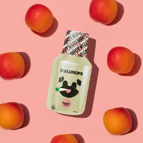 BombDope RollShot Peach to suplement diety na bazie oleju konopnego z dodatkiem soków owocowych, zawierający naturalne fitoskładniki, takie jak terpeny i flawonoidy.