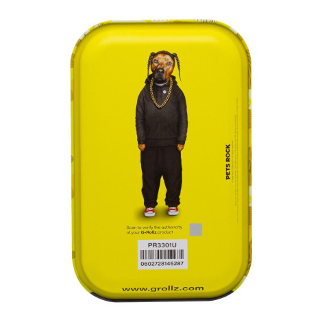 Piękna tacka metalowa marki G-Rollz z fantastyczną kolorową grafiką, przedstawiającą rapowego psa.