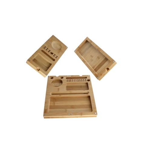 W zestawie znajdują trzy drewniane tacki łączące się za pomocą bardzo mocnych magnesów, tworząc imponującą przestrzeń do skręcania.