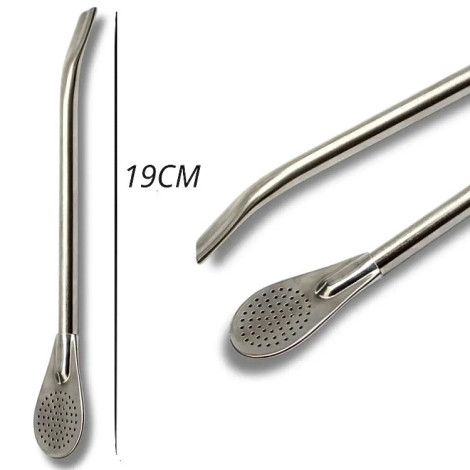 Wysokiej jakości bombilla ze stali nierdzewnej. Posiada bardzo bobrze filtrujący system "łyżeczka", który idealnie sprawdza się do każdego rodzaju mate. Porządna i komfortowa bombilla, zadbana posłuży na długie lata. Długość 19cm.