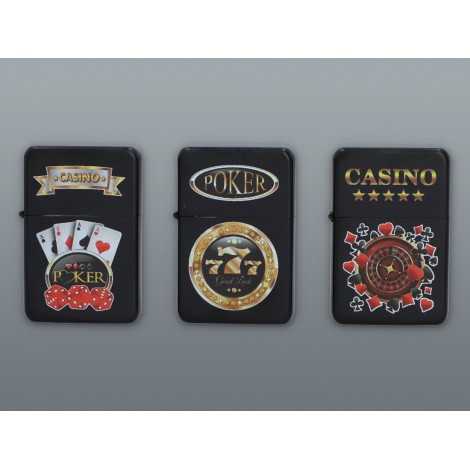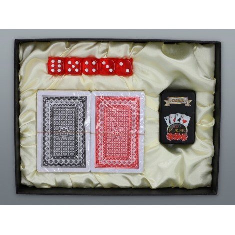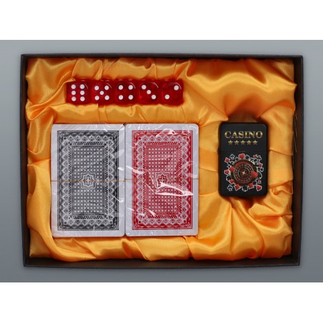 Świetny pomysł na zestaw prezentowy ! Benzynowa zapalniczka Kasyno z pewnością przypadnie do gustu miłośnikom gry w pokera. Są to niezbędne elementy do wspólnej gry. Zapalniczka nie gaśnie przy lekkim deszczu czy wietrze co jest jej dodatkowym atutem. A dwie talie kart wraz z pięcioma kostkami w kolorze czerwonym.