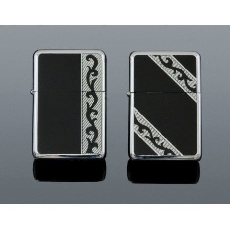 Klasyczna zapalniczka benzynowa w połyskującym srebrno-czarnym kolorze.