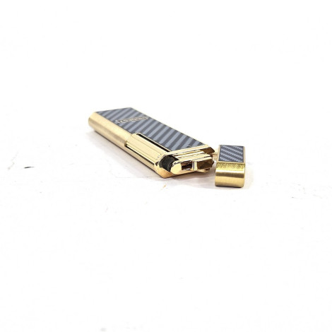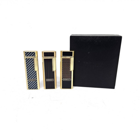 Bardzo elegancka i smukła zapalniczka marki Honest w prostokątnym kształcie z pokrętłem odpalającym płomień, umiejscowionym z boku zapalniczki, która daje płomień pod pewnym kątem co znacznie ułatwia odpalenie fajki.