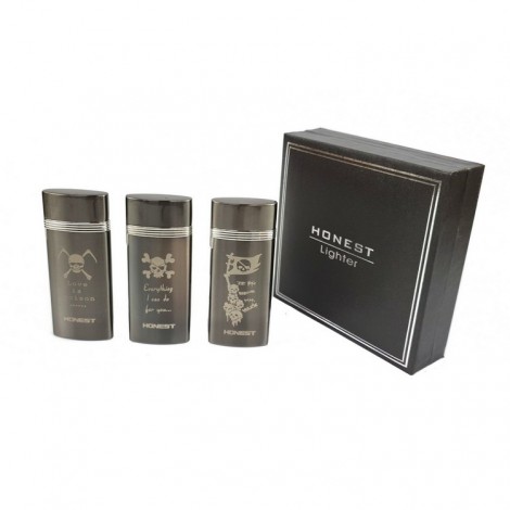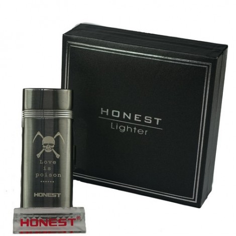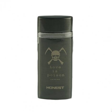 Jedno palnikowa zapalniczka żarowa Honest w grafitowym kolorze. Jej atrakcyjności nadaję wzór śmiertelnej czaszki z kosą i wymownym napisem Love is Poison. którym jest pokryta na froncie. Niewielkie logo firmy w szarym kolorze, znajduje się na dole pod wzorem. Zapalniczka otwierana wieczkiem co sprawia, że żarnik nie jest narażony na negatywne czynniki zewnętrzne.