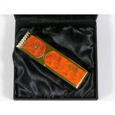 Jedno palnikowa zapalniczka żarowa Honest w połyskującym złotym kolorze. Jej atrakcyjności nadaję wyjątkowy sposób otwierania wieczkiem w bok, co sprawia, że żarnik nie jest narażony na negatywne czynniki zewnętrzne.