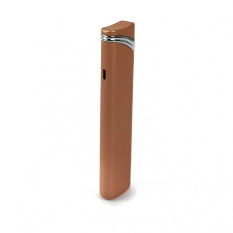 Zapalniczka w bardzo klasycznym wydaniu - w beżowym połyskującym kolorze ze srebrnymi elementami. o wąskim kształcie. Bardzo poręczny, wysmuklony kształt nadaje jej charakteru, a zarazem elegancji. Odpalana przy pomocy odsuwanego wieczka, który ma również za zadanie chronić zapalniczkę przed zabrudzeniami.