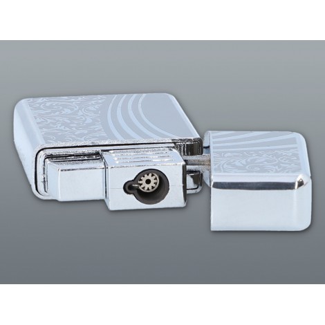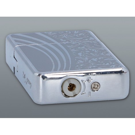 Zapalniczka żarowa o polerowanej powierzchni z matowym wzorkiem w tym samym kolorze. . Różniącym się w zależności od strony zapalniczki. Posiada podnoszoną klapkę, pod którą znajduje się przycisk włączający, utrzymany w srebrnej kolorystyce.
