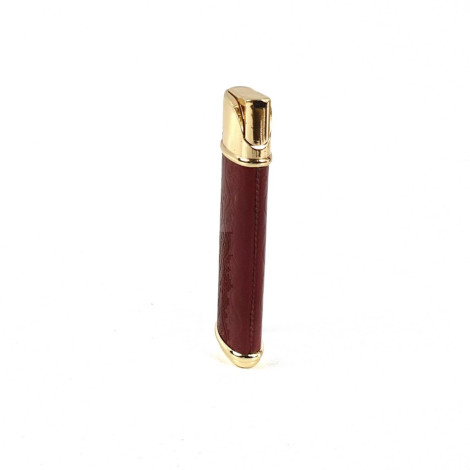 Złota zapalniczka żarowa Honest G3, pokryta czerwoną powłoką ze skóry syntetycznej z grawerowanymi kwiatkami.