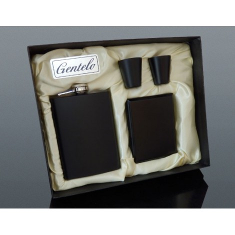 Elegancki Zestaw Prezentowy Gentelo - Piersiówka, kieliszek oraz papierośnica